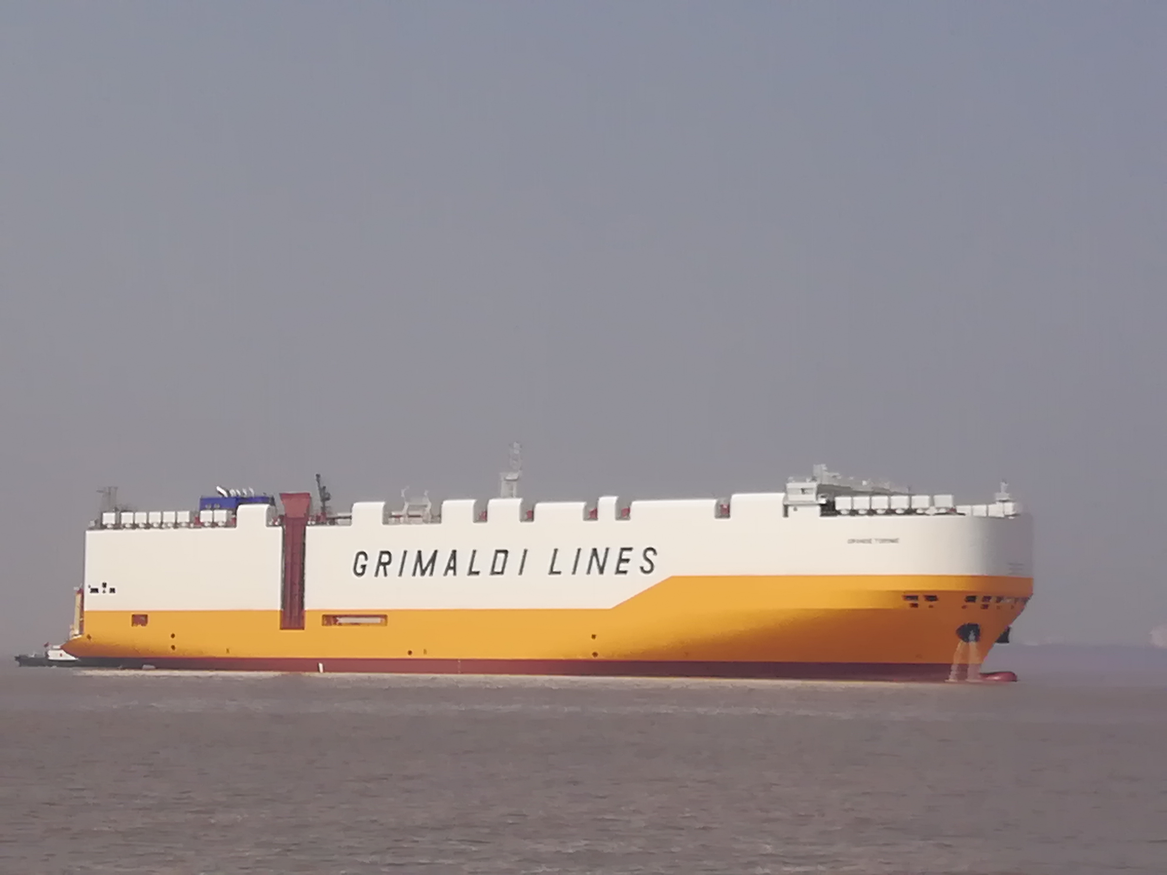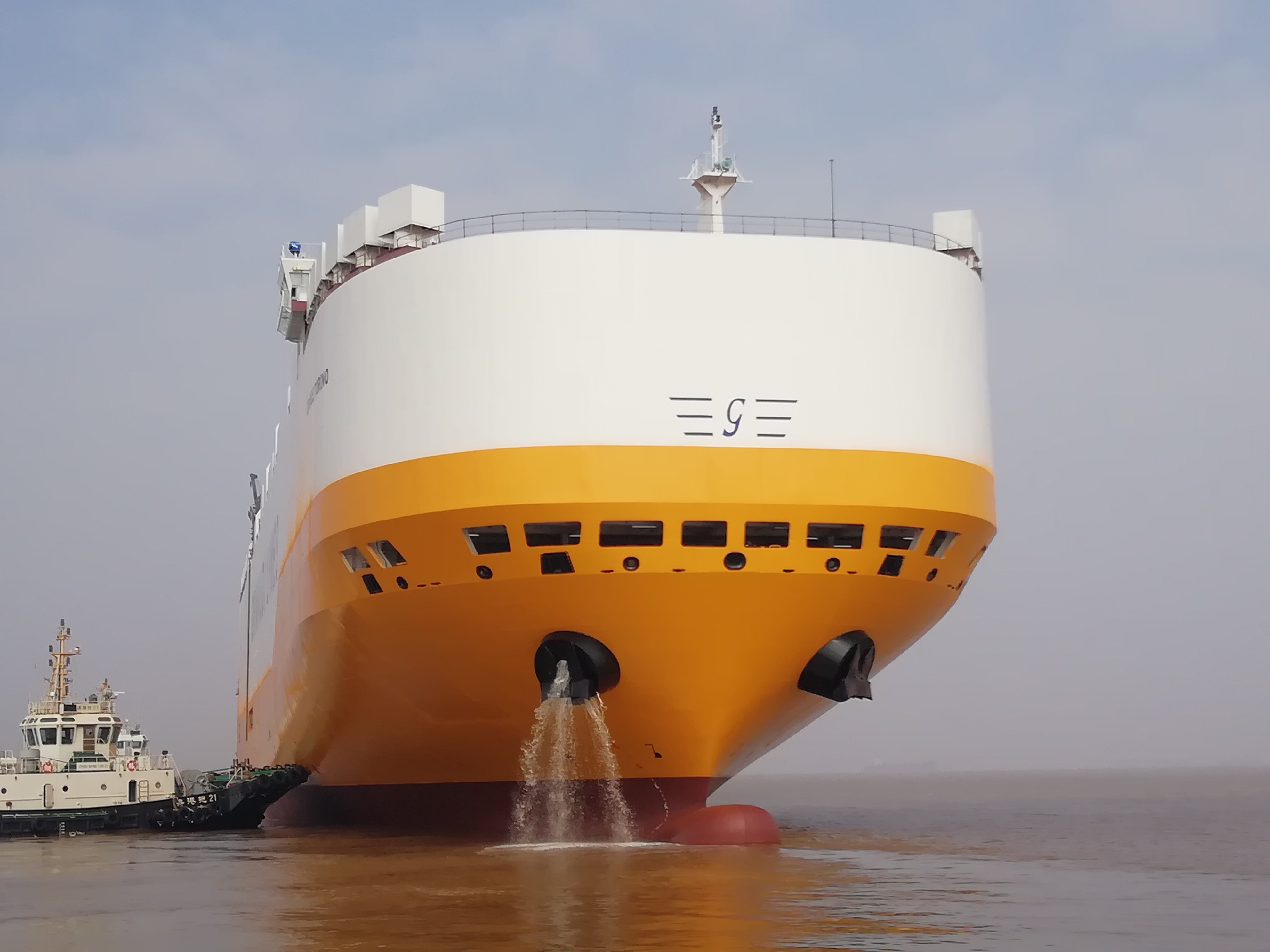 揚(yáng)帆集團(tuán)7800車汽車滾裝船首制船出塢