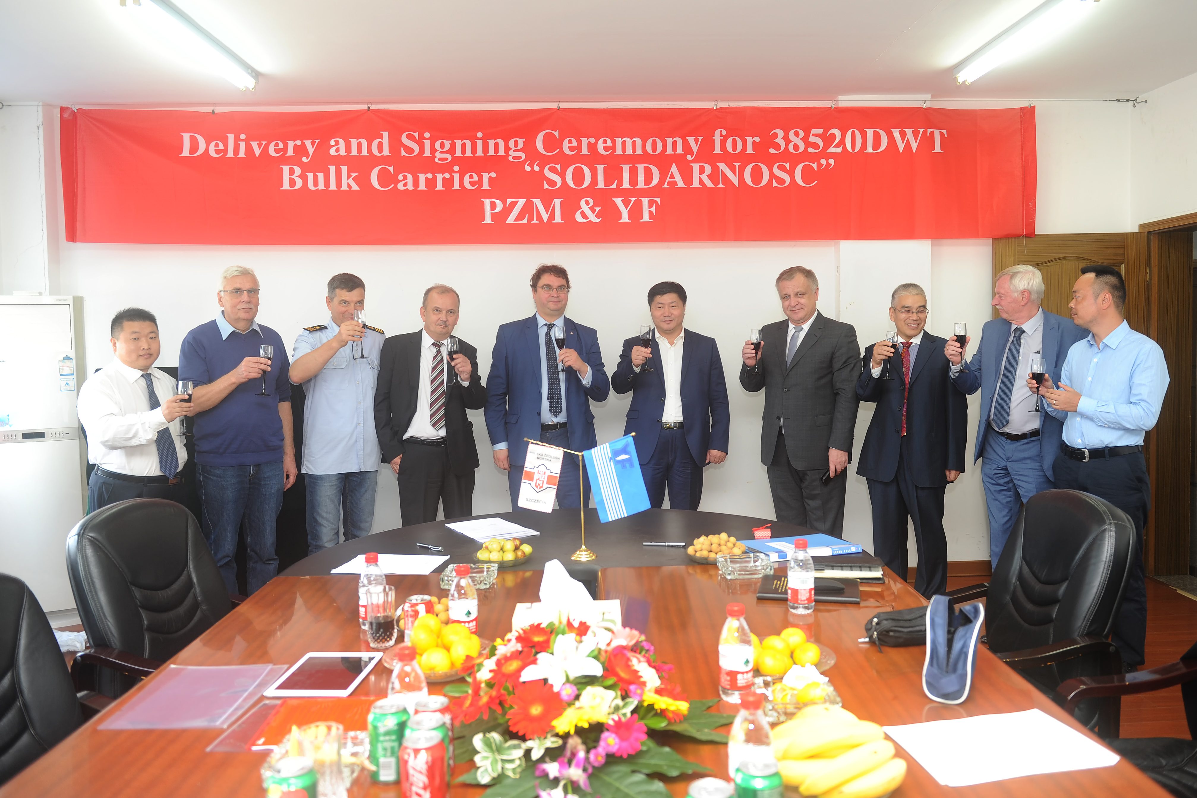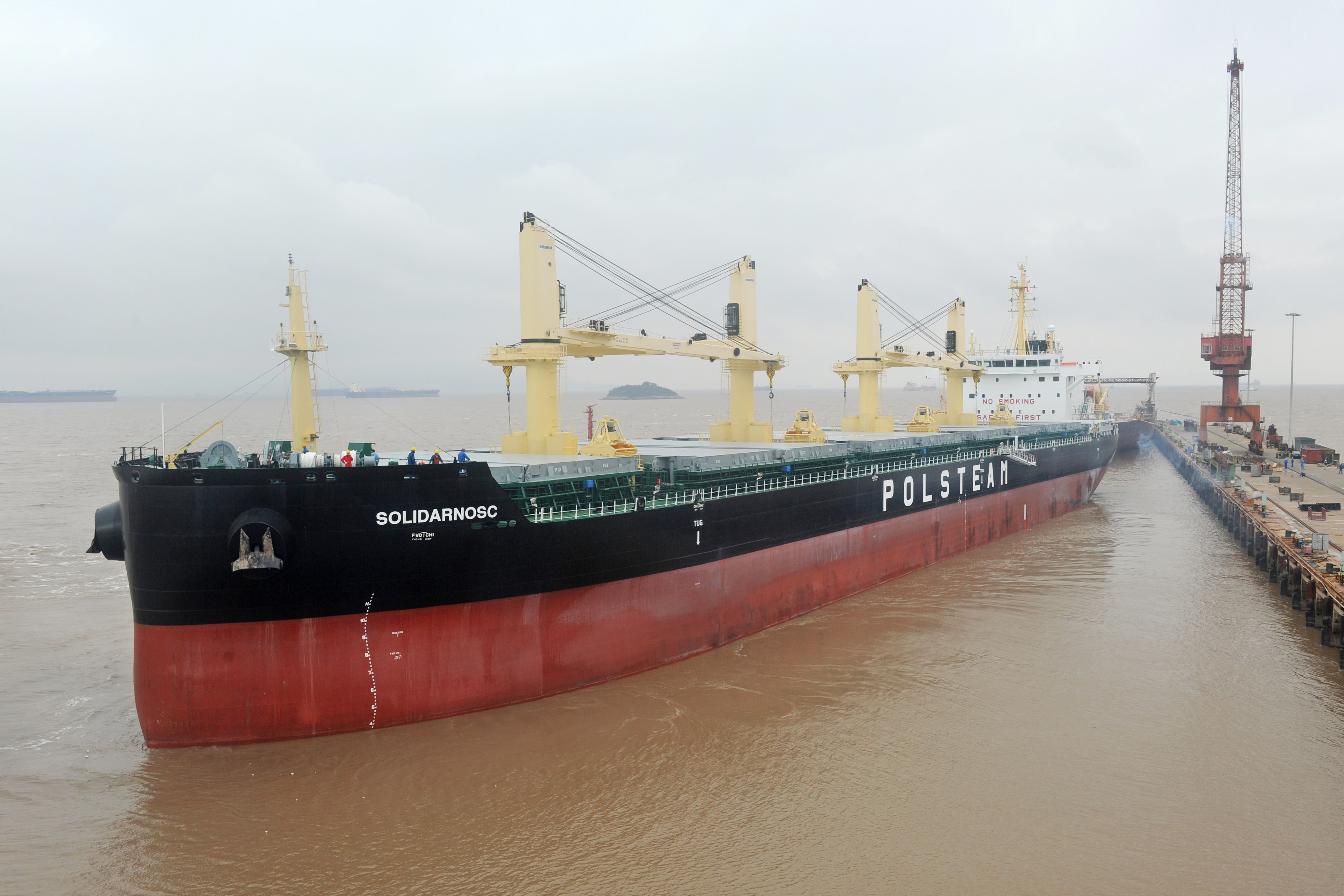 2018年10月11日,揚帆集團為波蘭船東建造的38520DWT系列散貨船“SOLID ARNOSC”正式簽字交付。該船型總長179.99m,型寬30.00m,型深15.00m,保證航速13.59kn,保證燃油消耗160.3gkwh。該船型是揚帆集團自行設(shè)計的經(jīng)濟節(jié)能、綠色環(huán)保型散貨船,大開口的雙殼設(shè)計,尾部左舷裝有一個鰭,船舵上帶舵球,起到降能增效作用。