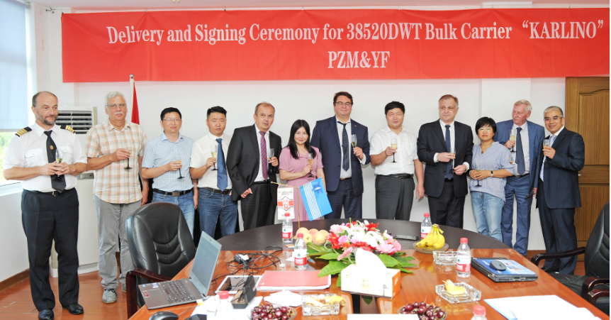 2019年7月30日下午,揚帆集團下屬浙江東海岸船業有限公司建造的一艘38520噸系列散貨船正式簽字交船。