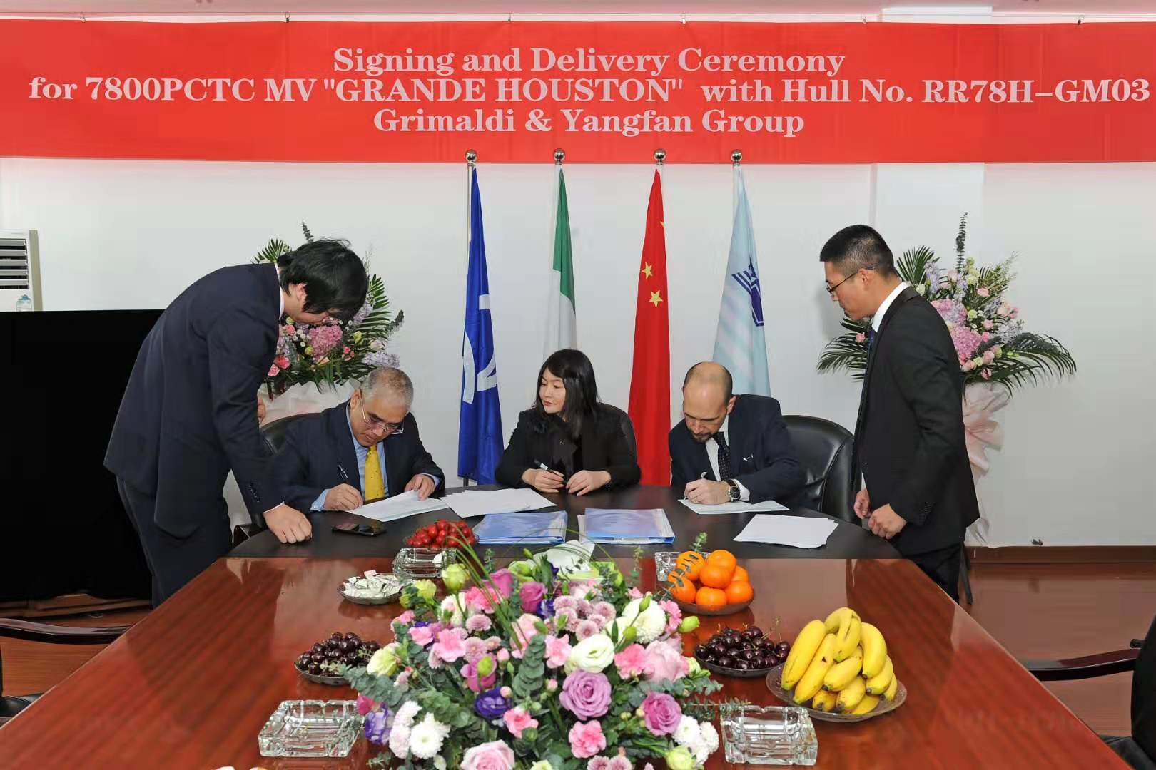 2020年1月15日,揚帆集團下屬浙江東海岸船業(yè)有限公司承建的7800PCTC系列船GM03正式簽字交付,該船實現(xiàn)了碼頭周期87天,2天試航一次成功的重要節(jié)點,船東對該船的各項指標非常滿意。公司在該系列船建造上的技術(shù)水平與管理能力正不斷完善與提高。