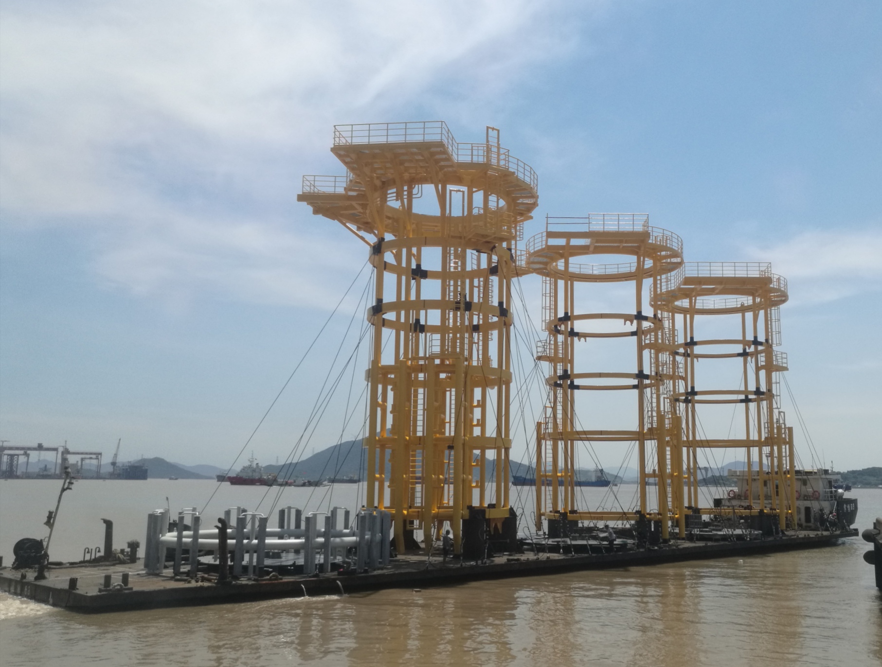 去年以來,公司積極拓展新業務、開拓新市場,由傳統造船業務向多元化生產轉型。通用公司銷售處處長凡成在接受媒體采訪時介紹,目前在交付的是第二批,一共兩套,之前已經交付了三套,整體質量反饋情況良好。“在場地總組階段的已經有4套,另外的一些零部件的制作在通用和永錦車間完成,會相繼裝運過來,盡快完成組裝。后續將陸續按合同約交付。”